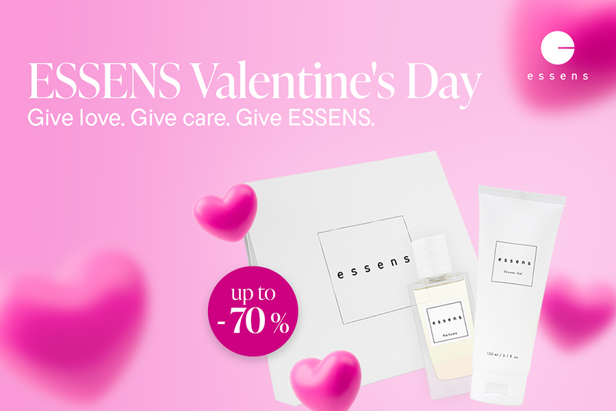 Here are Valentine`s Day discounts of up to 70% on selected products, which make it the ideal time to give and receive love and joy. You can look forward to a wide selection of fragrances, cosmetics and ESSENS sets.